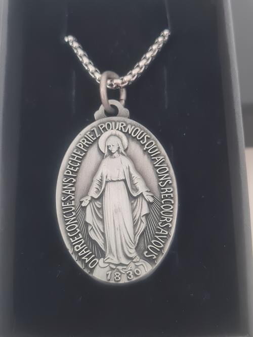 34 mm Rue De Bac Miraculous Medal Necklace in Gift Box